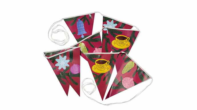 Flaggorna sys ihop med ett band, vilket man sen hänger upp flaggspelet med.
