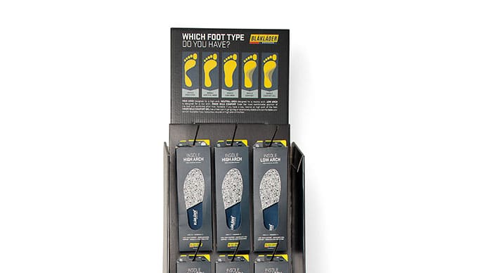 Vi brukar skilja på olika typer av butiksdisplayer, där vi utöver golvdisplayer ofta gör palldisplayer – tänkta att passa en lastpall – och displayer i reboard – ett stabilt material för stabila displayer som kan stå flera år i butik.