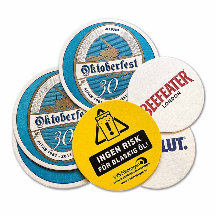 Beer coasters – eller ölunderlägg – trycks på anpassat papper. Vanligast är runda eller kvadratiska med rundade hörn – valet är ert.